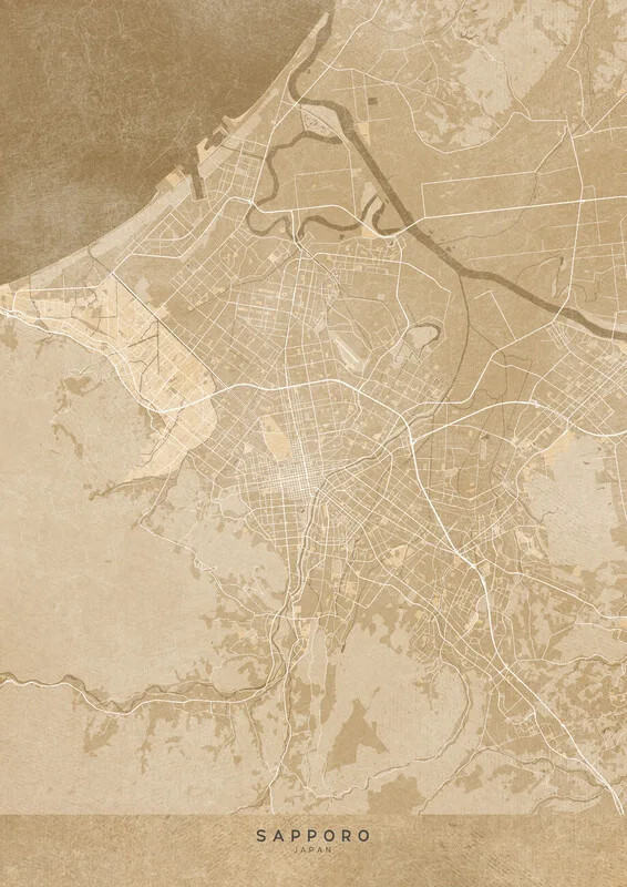 Samolepka Map of Sapporo (Japan) in sepia vintage style
