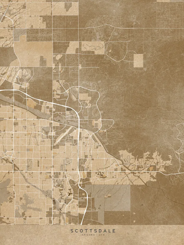 Obraz na plátně Map of Scottsdale (AZ, USA) in sepia vintage style