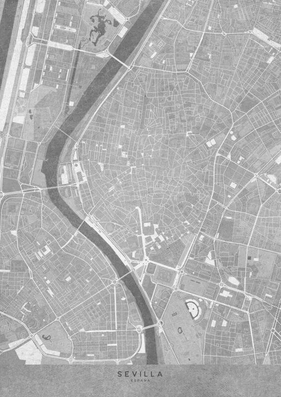 Obraz na plátně Map of Sevilla downtown (Spain) in gray vintage syle