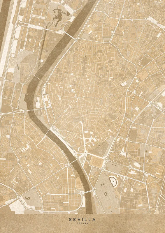 Plakát Map of Sevilla downtown (Spain) in sepia vintage syle
