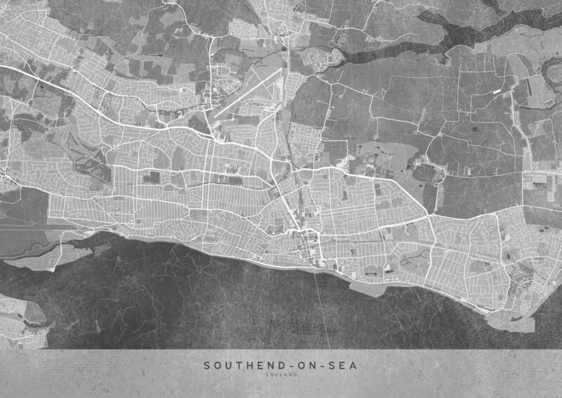 Plakát Map of Southend-on-Sea (England) in gray vintage style
