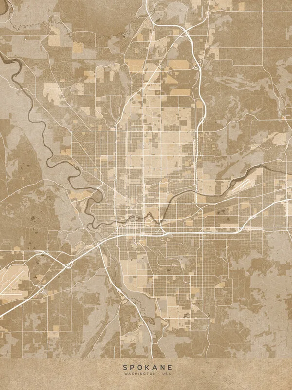 Obraz na plátně Map of Spokane (WA, USA) in sepia vintage style