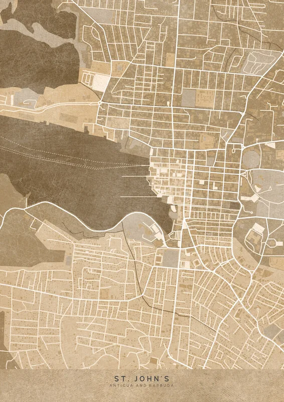 Obraz na plátně Map of St. John's (Antigua and Barbuda) in sepia