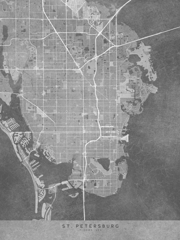 Plakát Map of St. Petersburg (FL, USA) in grey vintage style