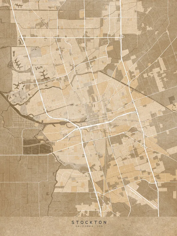 Obraz na plátně Map of Stockton (CA, USA) in sepia vintage style