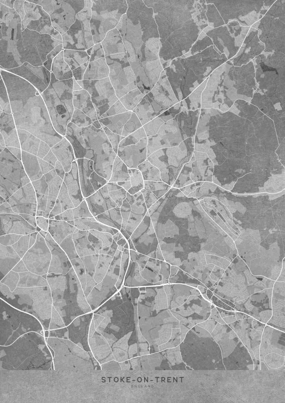 Plakát Map of Stoke-on-Trent (England) in gray vintage style