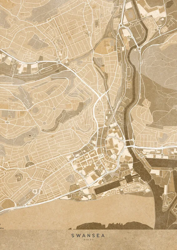 Obraz na plátně Map of Swansea (England) in sepia vintage style