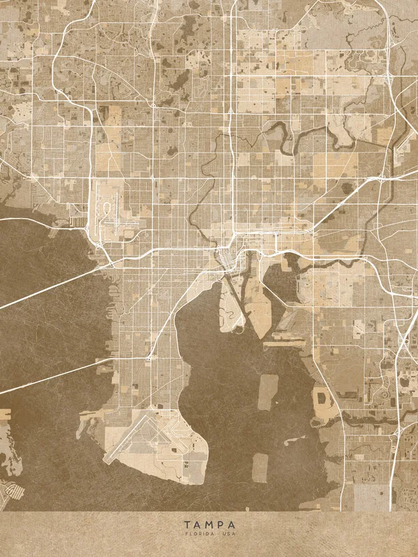 Plakát Map of Tampa (FL) in sepia vintage style