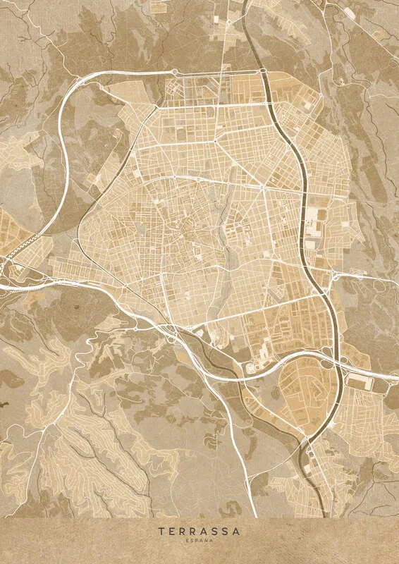 Plakát Map of Terrassa (Spain) in sepia vintage syle