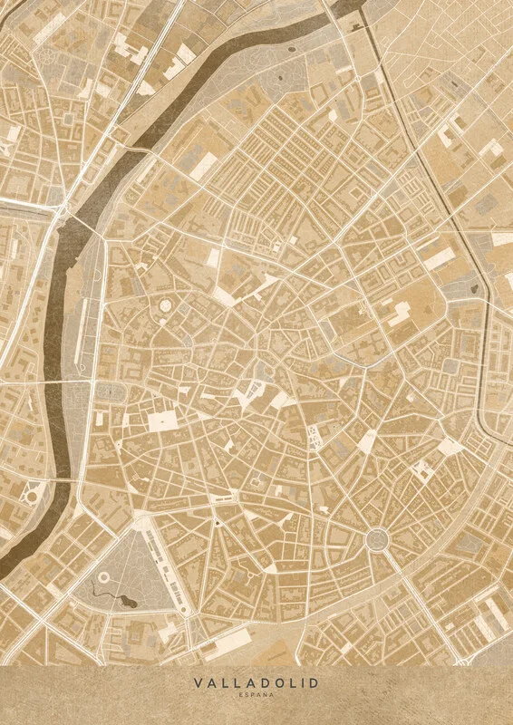 Plakát Map of Valladolid downtown (Spain) in sepia vintage syle
