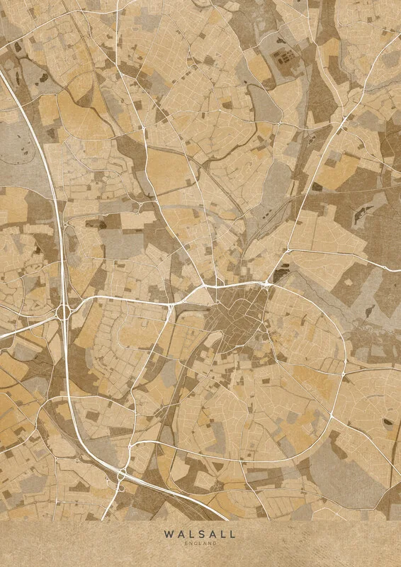 Obraz na plátně Map of Walsall (England) in sepia vintage style