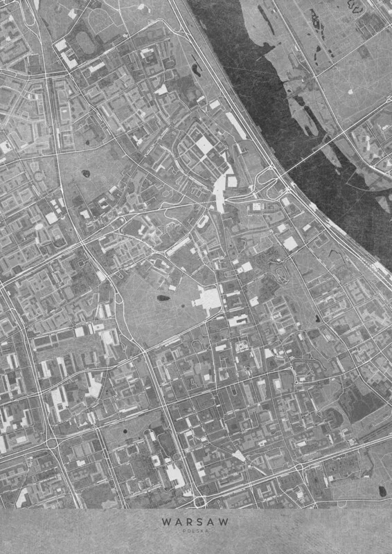 Samolepka Map of Warsaw downtown (Poland) in gray vintage style