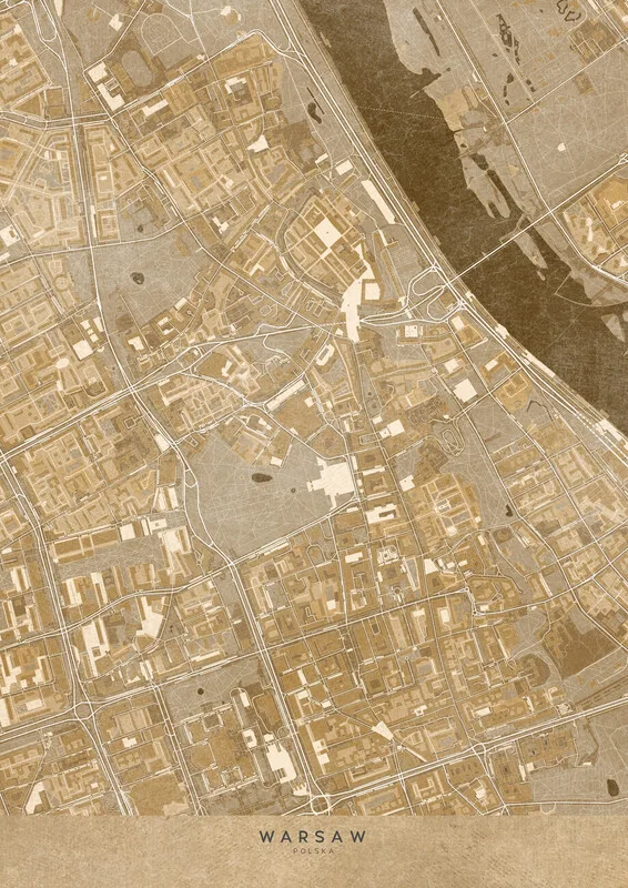 Samolepka Map of Warsaw downtown (Poland) in sepia vintage style