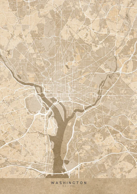 Samolepka Map of Washington (DC) in sepia vintage style