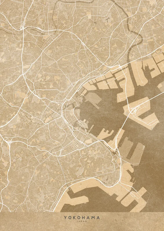 Obraz na plátně Map of Yokohama center (Japan) in sepia vintage style