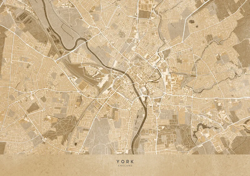 Obraz na plátně Map of York (England) in sepia vintage style