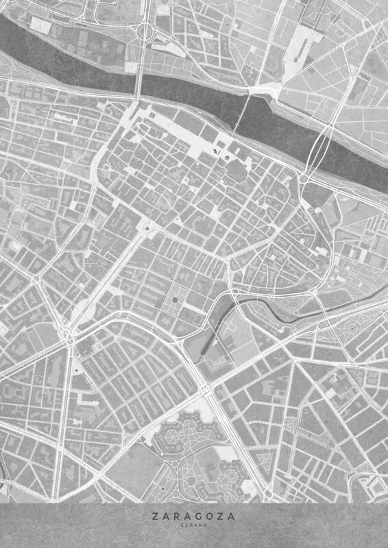Plakát Map of Zaragoza downtown (Spain) in gray vintage syle