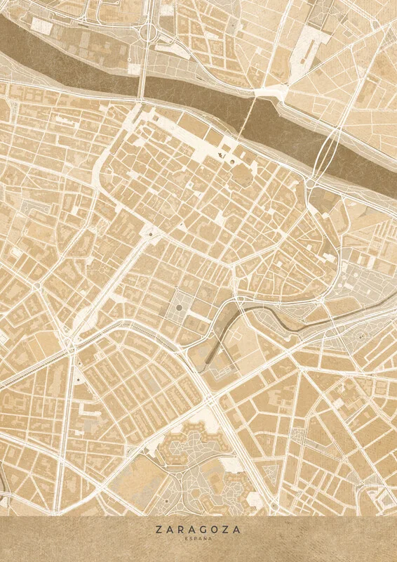 Samolepka Map of Zaragoza downtown (Spain) in sepia vintage syle