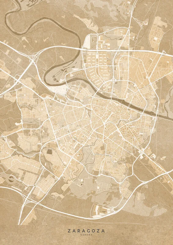Plakát Map of Zaragoza (Spain) in sepia vintage syle