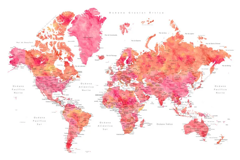 Samolepka Mapamundi con etiquetas en español Tatiana