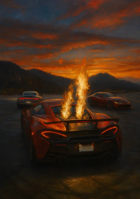 Obraz na plátně McLaren Fire Flames Mountain Sunset Art Painting