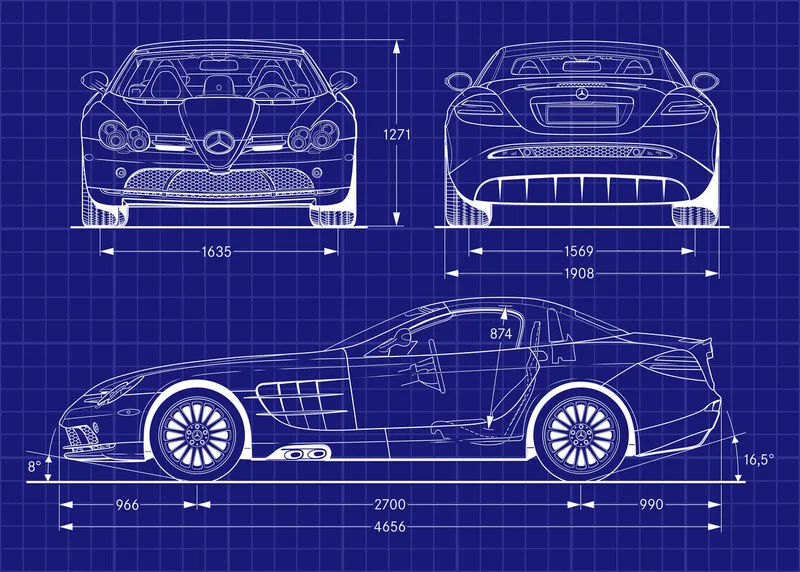 Plakát Mercedes SLR McLaren Roadster 722 S 2009 Blueprint