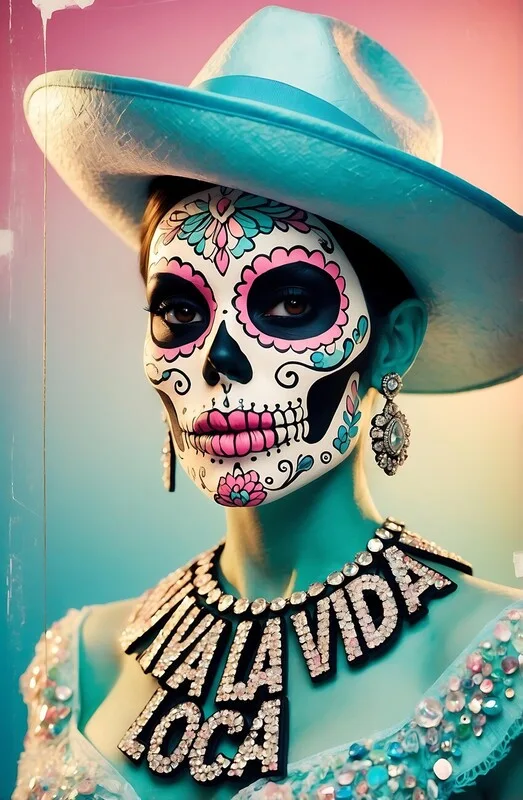 Obraz na plátně Mexican Catrina Calavera Artwork in Bright Colors