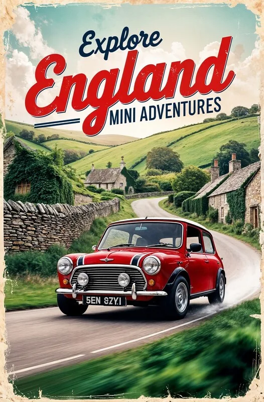 Obraz na plátně Mini Cooper English Countryside Poster: Vintage Charm