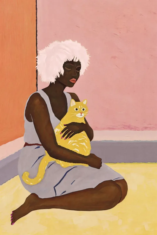 Samolepka Modern Pop Art Female Portrait, Woman with Orange Cat