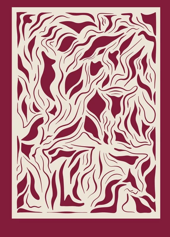 Samolepka Modern Waves Illustration Wine Red