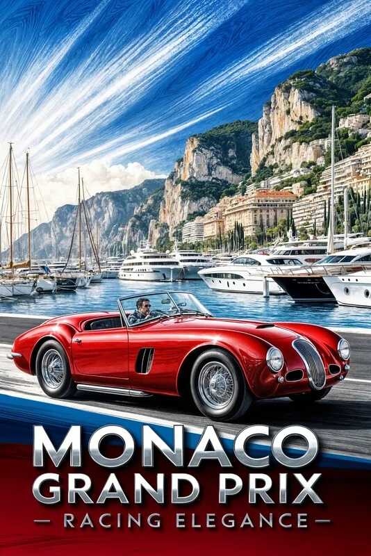 Samolepka Monaco Grand Prix Illustration: Vintage Racing Elegance