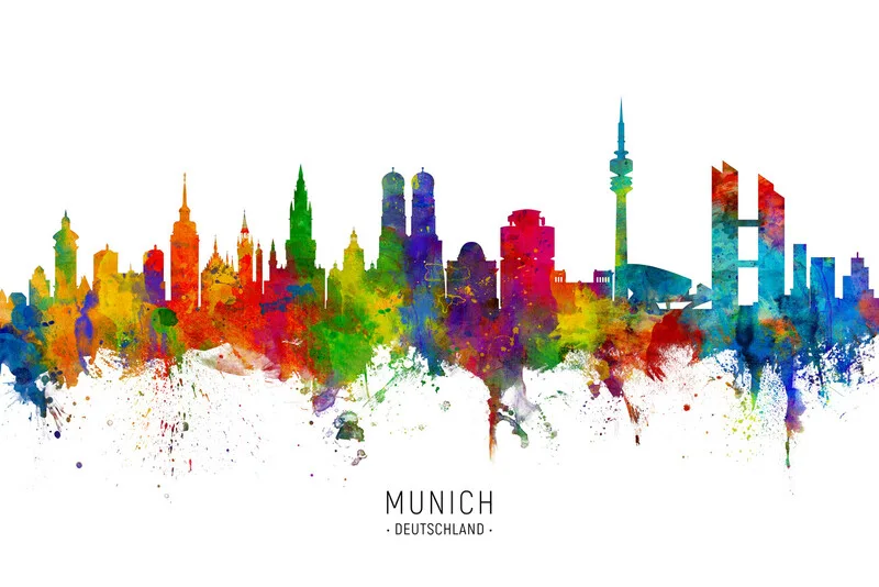 Samolepka Munich Deutschland Skyline Cityscape Painting Watercolor
