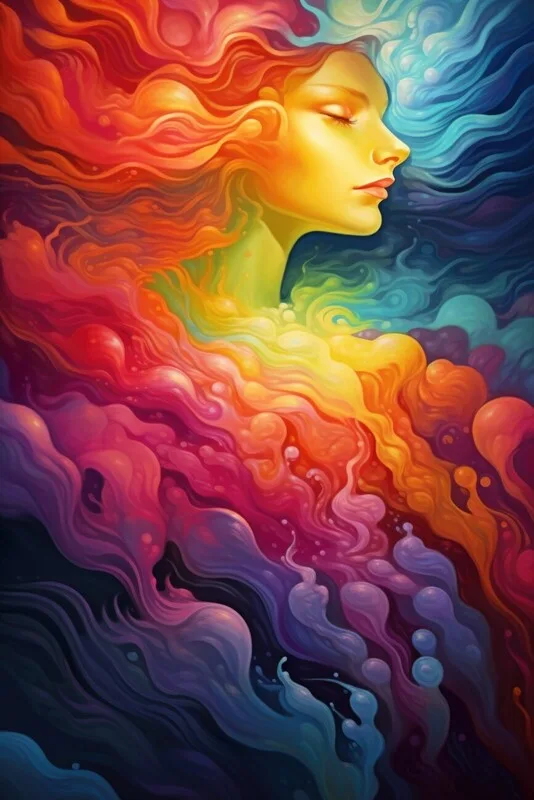Plakát Mystic Aura - Abstract Woman in Colorful Waves Art
