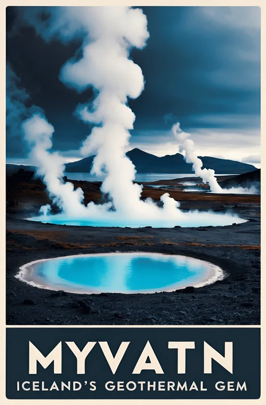 Obraz na plátně Mývatn Vintage Travel Poster – Geothermal Gem of Iceland
