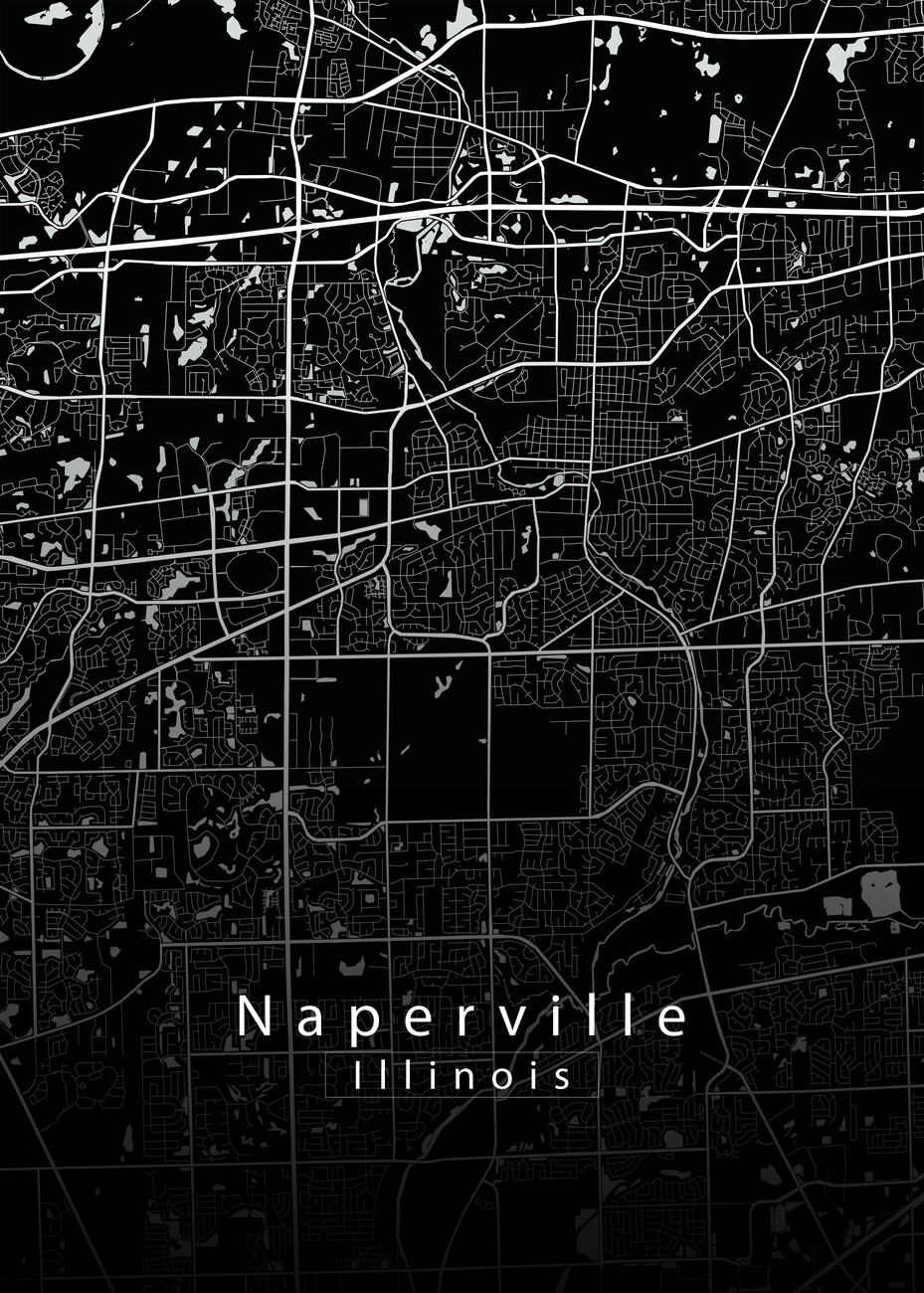 Plakát Naperville Illinois City Map black
