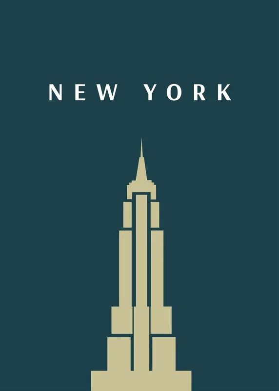 New York Poster with the Empire State Building. New York is the biggest City in the East Coast of the United States of America.