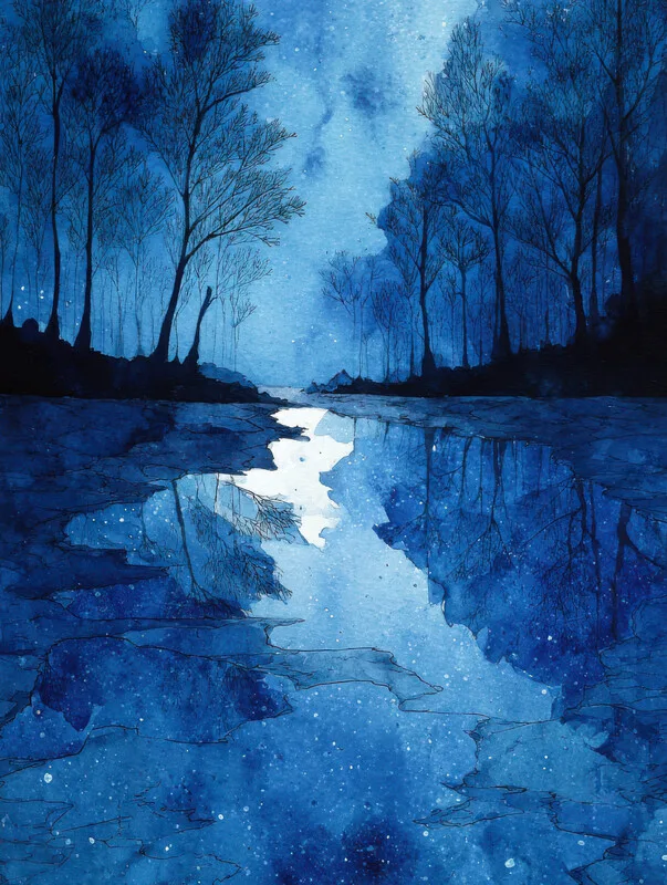 Samolepka Night Reflections in Blue Watercolour