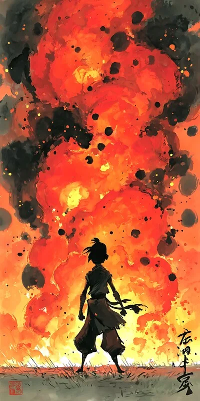 Obraz na plátně Ninja Z Manga behind Fire Explosion