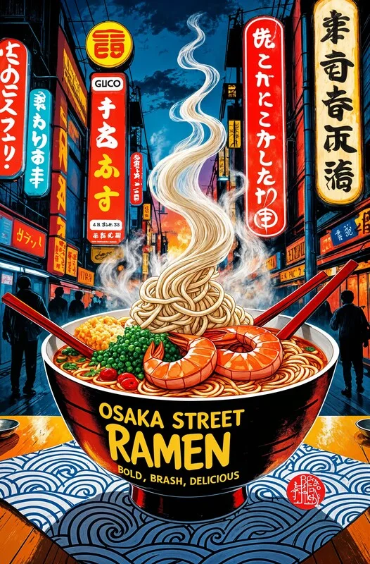 Samolepka Osaka Street Ramen Poster – Bold Japanese Noodle Art