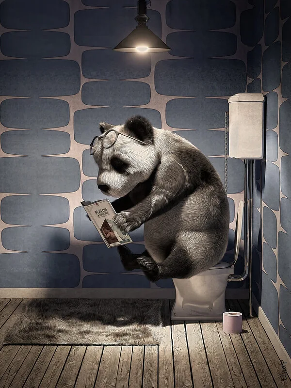Samolepka Panda on the toilet, Funny Animal Wall Art, Animal on Toilet
