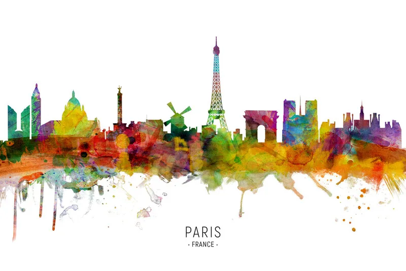Samolepka Paris France Skyline Cityscape Painting Watercolor