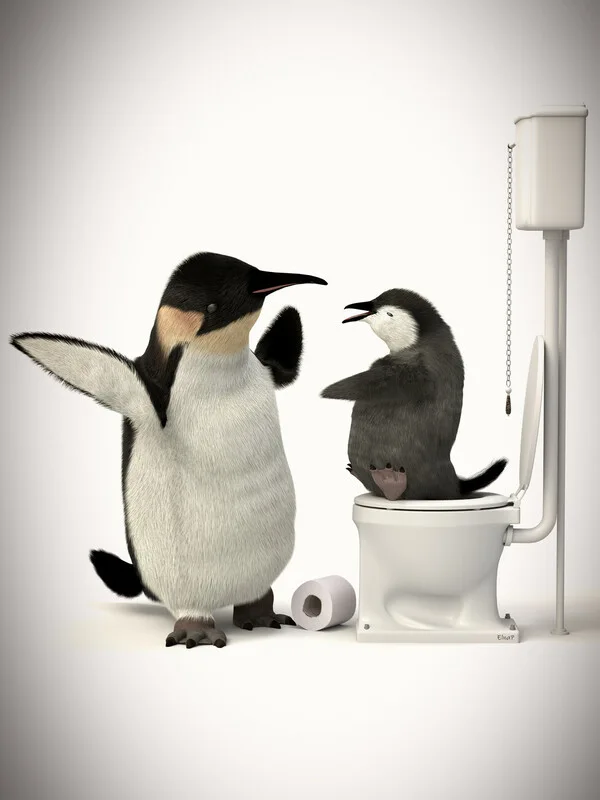 Obraz na plátně Penguin in the toilet, animal print in the toilet, funny art