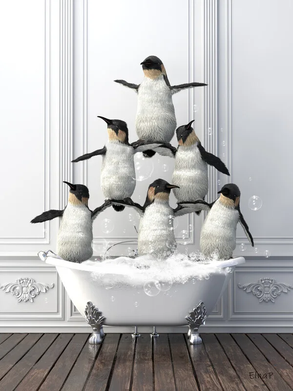 Obraz na plátně Penguins in Tub Print Wall Art,penguin Photo, penguin Art
