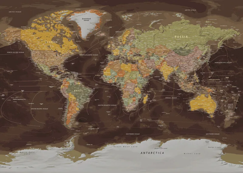 Obraz na plátně Political World Map Dark Color