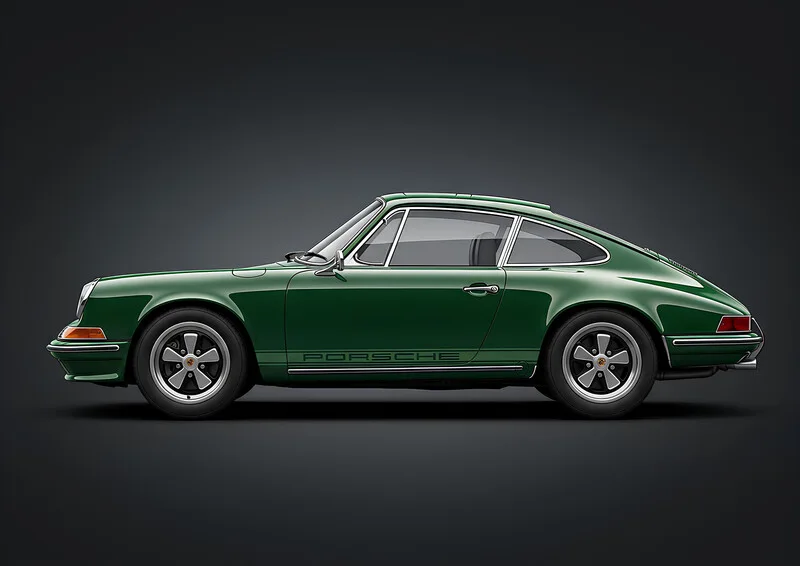 Plakát Porsche 911 Classic - Emerald Green Side Profile