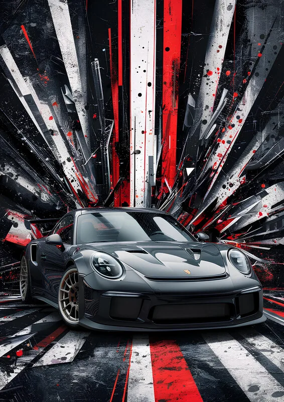 Samolepka Porsche 911 GT3 with Explosive Abstract Art Background