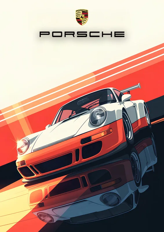 Plakát Porsche 911 Orange and White Retro Art Print