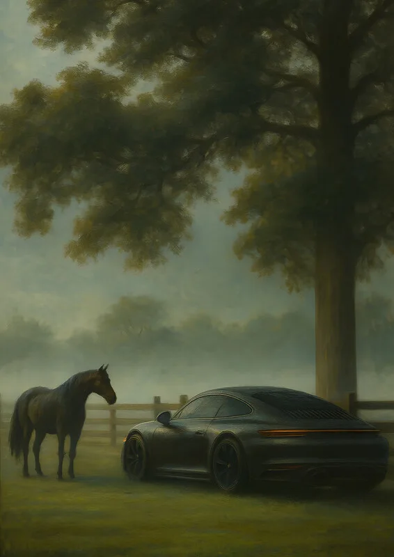 Plakát Porsche Horse Pastoral Scene Art - Countryside Painting