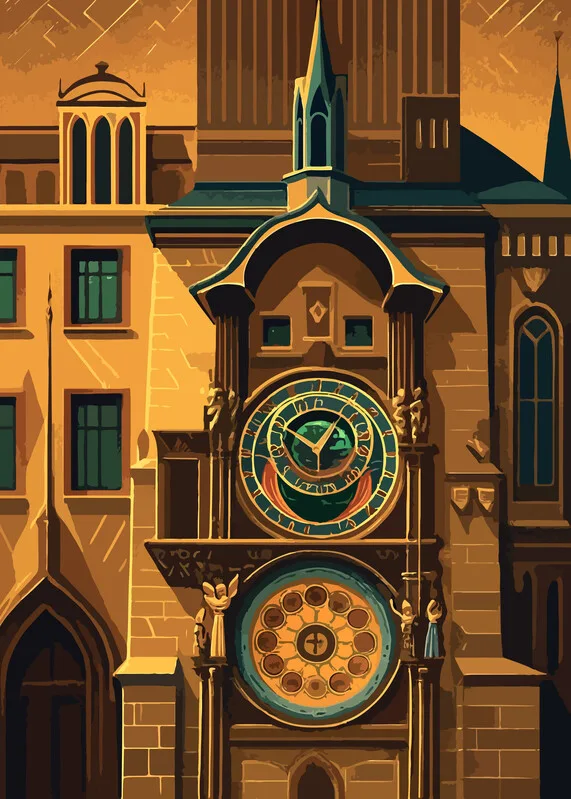 Samolepka Prague Astronomical Clock - Orloj - Art Deco Wall Art Print