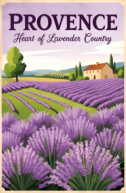 Samolepka Provence Vintage Poster– Lavender Fields Illustration